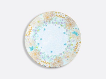 ‘‘For this collaboration, I wanted a festive, celestial and solar decor. An explosion of patterns like a firework … With a starry sky of small dandelion flowers, carrot flowers, clovers and wreaths of cherry blossoms. The hummingbird and the butterflies twirl, they are attracted by the light and the gold shards. A moving nature, joyful and bright.” Michaël Cailloux
