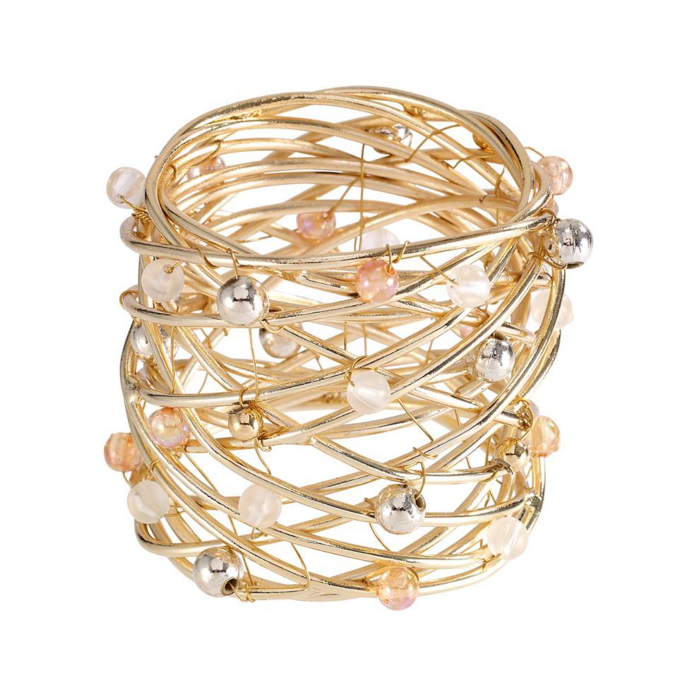 Elevate your dining experience with our Beaded Lattice Napkin Ring in a luxurious gold finish. The intricate bird’s nest design adorned with delicate beads adds a touch of elegance and sophistication to any table setting. Perfect for special occasions or everyday use.