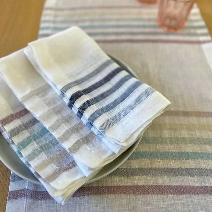 Stripes are a classic that will always be in style, making our Logan collection timeless! They can easily go from traditional to contemporary. Made with 100% linen, they have an incredibly soft hand feel. Available as napkins and runners in 4 great color combinations.
