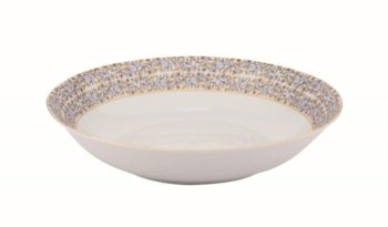 Shimmering gold vine details lend depth and dimension to Philippe DeshoulieresÂ’ striking Vignes dinnerware.
