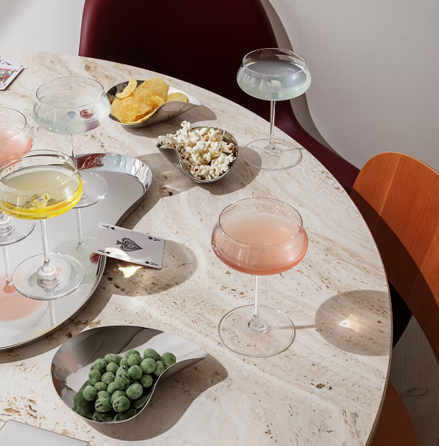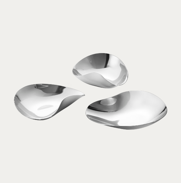 Worthy of the most appetizing snacks, these stainless steel condiment bowls by Helle Damkjær can house olives, nuts, chips and more. Either peppered about the table or clustered together their organic shapes encourage you to style them as you see fit. The pieces are not dishwasher safe.