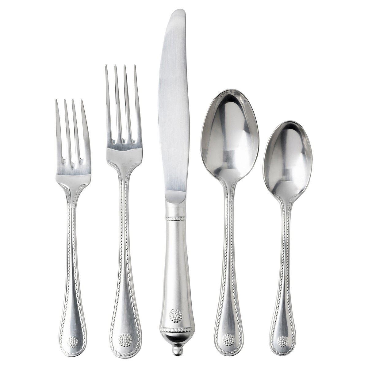 From our Berry and Thread Collection- meticulously designed and crafted in the spirit of old world French tradition, our Berry and Thread stainless steel flatware is optimum weight in-hand, exceptional for its decorative motif on both front and back and hand rubbed with care to a warm luster finish. This setting is the essence of rustic and refined style. Pairs beautifully with the following ceramic patterns: Berry and Thread, Jardins du Monde, Pewter Stoneware, Classic Bamboo.