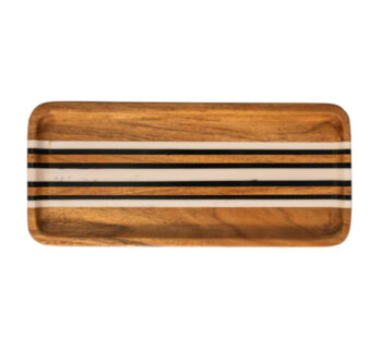We love the intersection of natural wood grain with linear stripes in black and white that this sleek tray features. A versatile catchall for everyday life, it makes an ideal accent piece for everything from your kitchen countertop to bedside table.