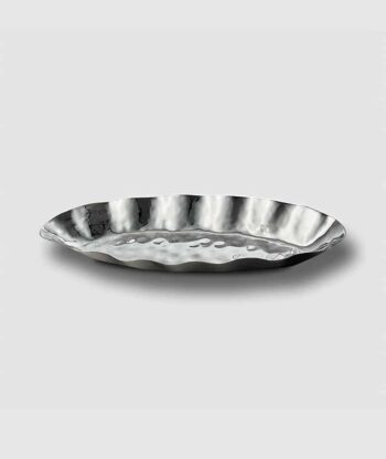 Long and low with flared edges, Blossom Free Form Oval Tray comes in handy when setting out your favorite artisanal breads, Italian grissini or vibrant crudités for party entertaining. On the dinner table -farm fresh vegetables are always beautifully well-served in this sculptural form.