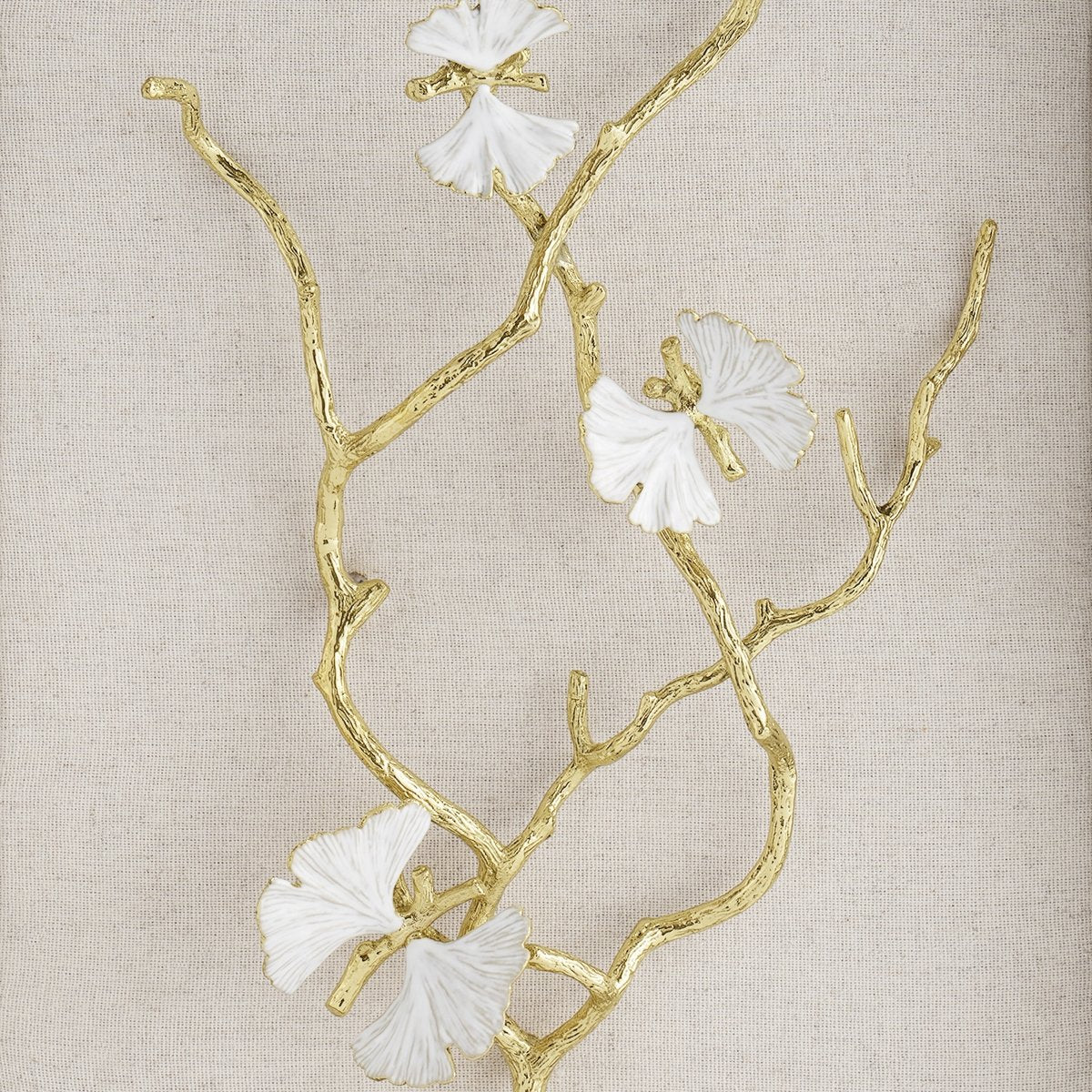 The Butterfly Ginkgo Gold Collection pays tribute to Michael’s original Butterfly Ginkgo Collection, which first debuted in 2007 and shortly thereafter became one of the most iconic motifs in Aram’s oeuvre. With the launch of this second generation interpretation of one of his favorite collections, Aram breathes new life into one of his most poetic motifs with solid brass sculpts, polished to a gold hue, and featuring painted white enamel butterflies.