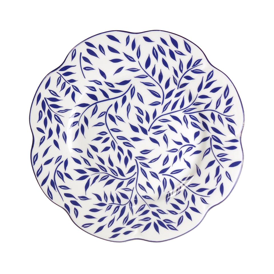 Blue olive leaves decorate each piece of exquisite white porcelain handcrafted in Limoges. The Nymphea shape is the well known style of Royal Limoges, featuring softened edges reminiscent of floral petals. Handmade in France since 1797.