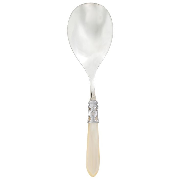 The Aladdin Brilliant Serving Spoon features gorgeous Ivory handles. Made in Lumezzane, Italy of 18/10 stainless steel and high-grade acrylic.