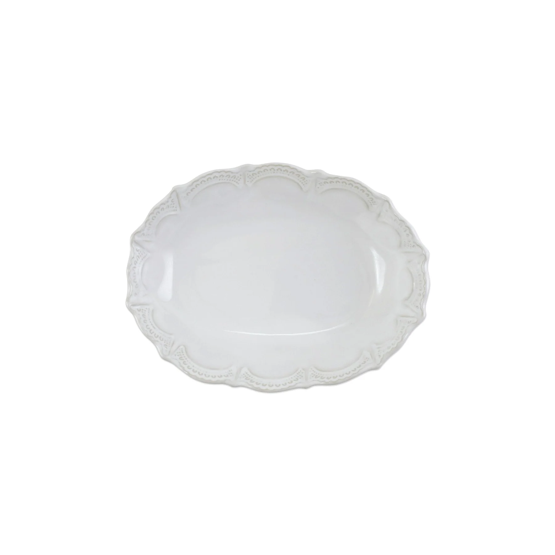 Italian for enchantment, Incanto is inspired by Italy’s art, landscape, and Venetian history. The intricate design on the Incanto Stone White Lace Small Oval Bowl pays homage to the famed lace of Venice’s Burano island, and bowl is a piece of art for your table.