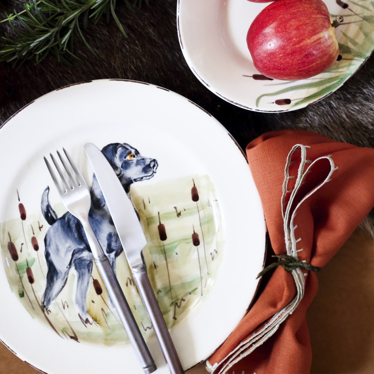 Handpainted in Tuscany and an instant classic for everyday dining, the Wildlife Black Hunting Dog Salad Plate brings the grandeur and beauty of the outdoors to your table with exceptional craftsmanship and attention to detail.